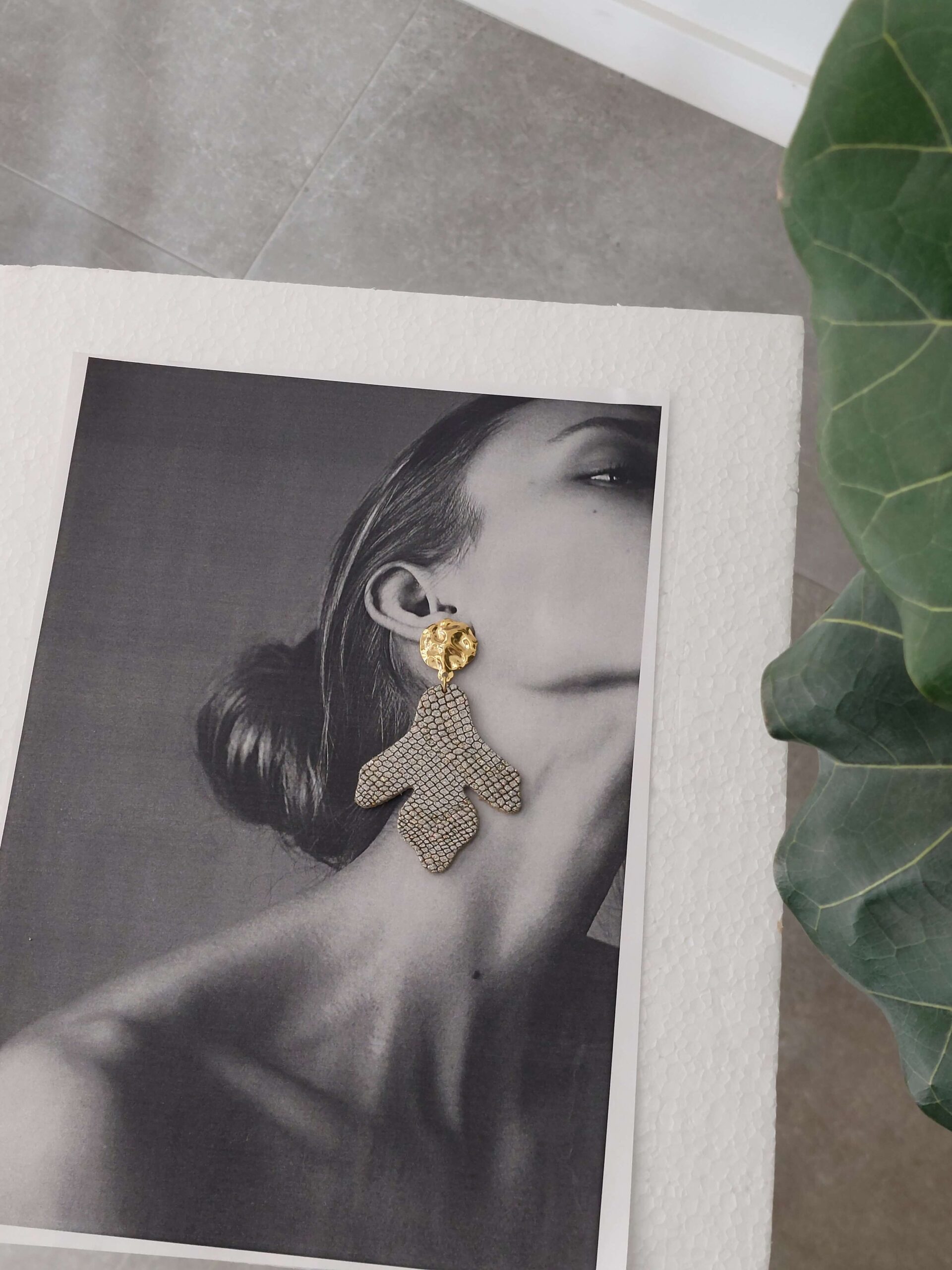 Glitter Cecelia earrings είναι ένα statement ζευγάρι σκουλαρίκια φτιαγμένα από δέρμα και ατσάλινο κούμπωμα για λαμπερό αποτέλεσμα και γυαλιστερό φινίρισμα. Λουλουδάτα σχήματα και minimal αισθητική προσδίδουν μια πολυτέλεια στην εμφάνιση σας. Αφεθείτε στην κομψότητα τους και συνδυάστε τα με basic κομμάτια ή επίσημα φορέματα.