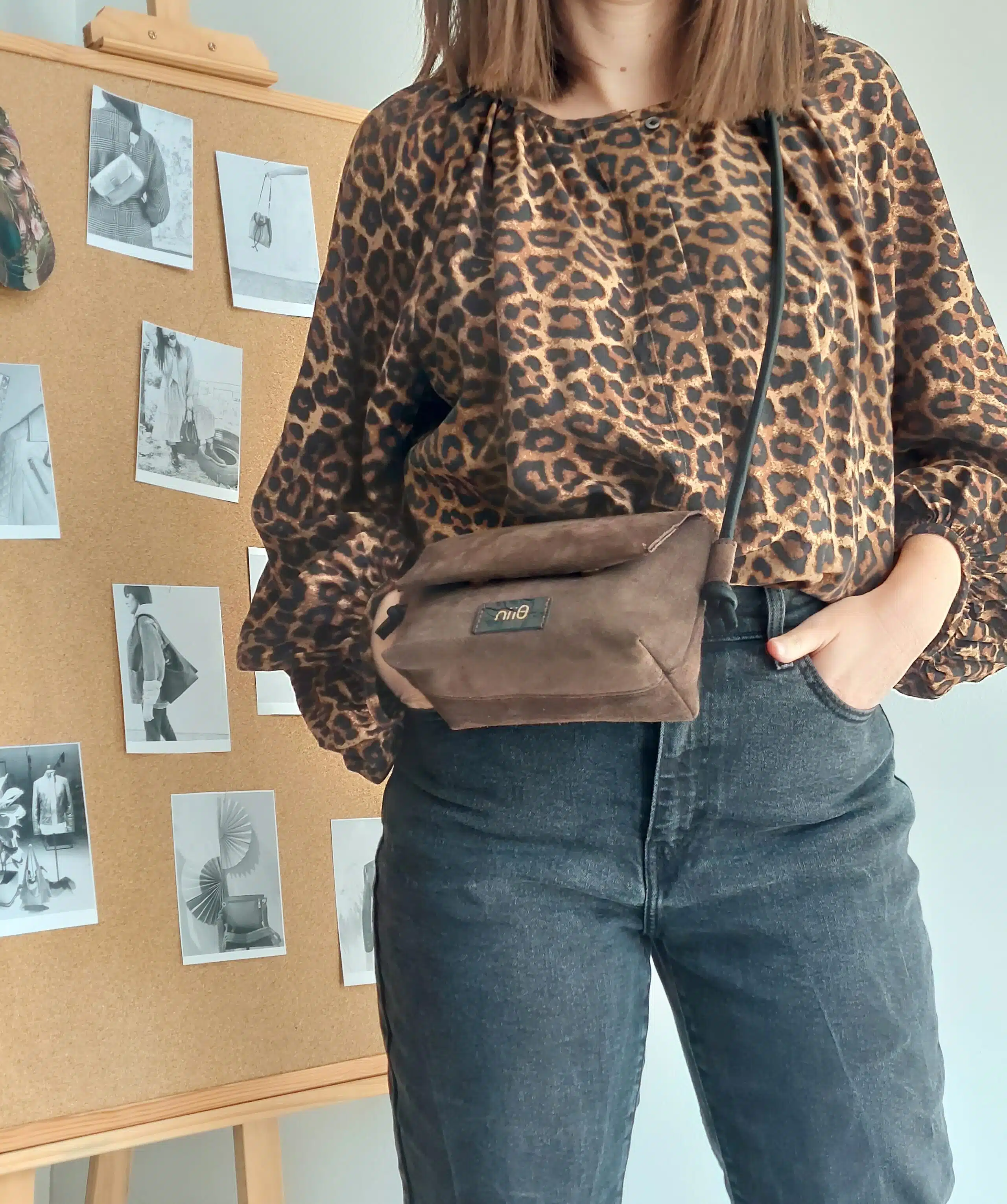 - Mia δερμάτινο τσαντάκι με δερμάτινο ρυθμιζόμενο κορδόνι για μοναδικές εμφανίσεις.